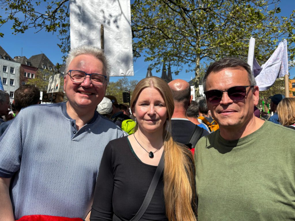 Vielleicht waren noch mehr unserer Mitglieder dort, die drei auf dem Foto unten haben es aber geschafft, sich zwischen Tausenden anderen Teilnehmern zu treffen. Es war eine großartige Veranstaltung, viele motivierte Menschen, gute Reden und die Sonne hat uns mit viel kostenloser Energie versorgt 😉